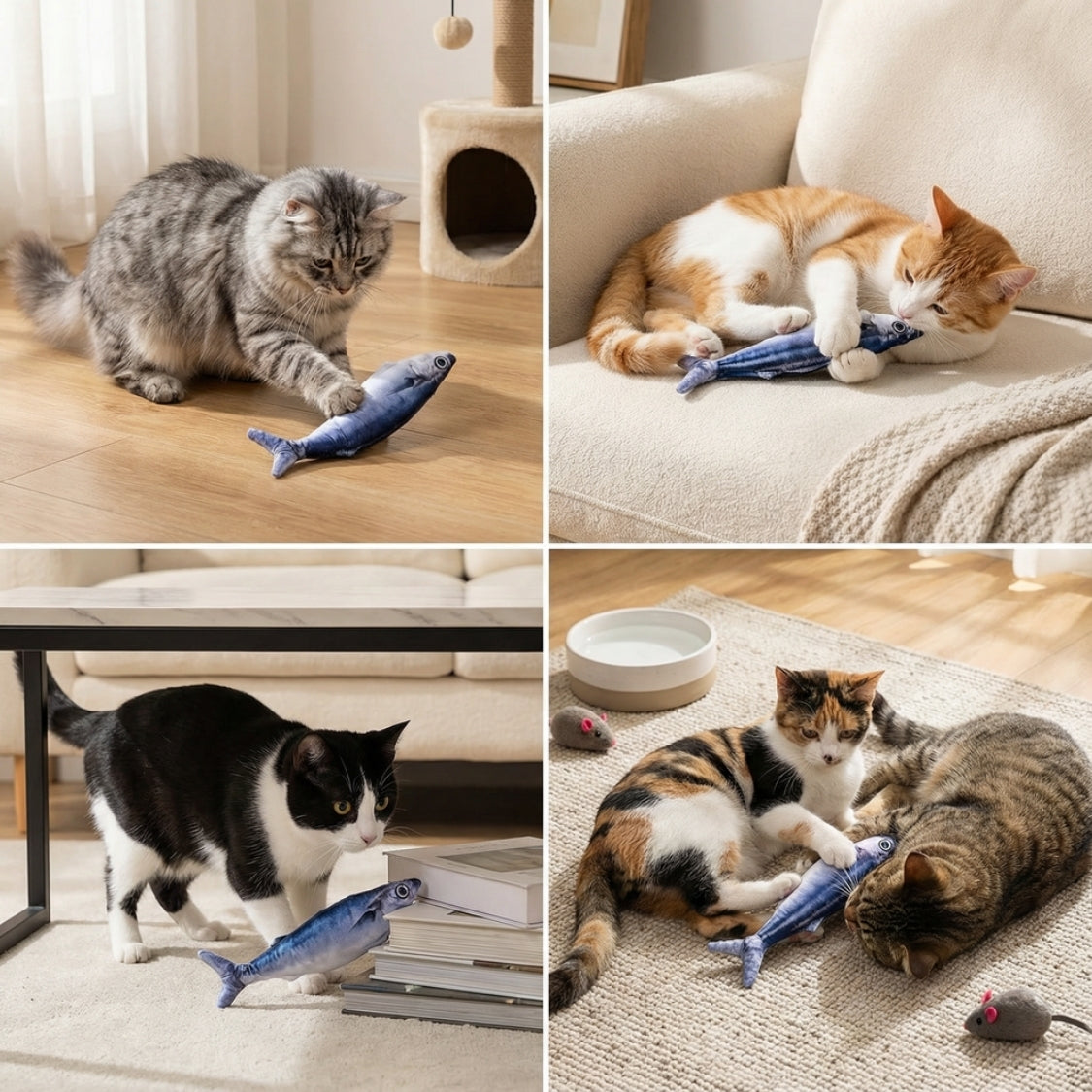 Turn everyday playtime into an exciting hunting adventure with WigglyFish a lifelike flopping fish designed to keep cats active, curious, and entertained. This smart interactive cat toy responds instantly to your cat’s touch, wriggling and flopping like real prey to stimulate natural instincts.